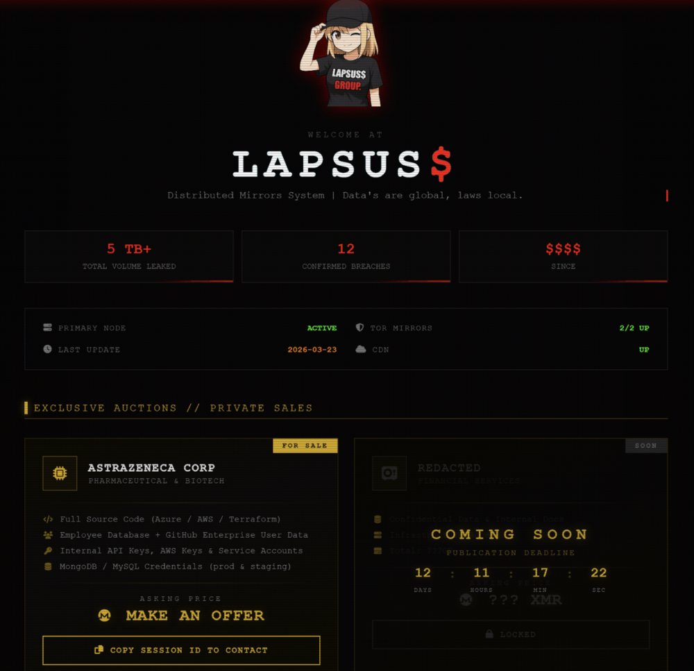 Na stronie typu shame site (strona w sieci Tor, na której cyberprzestępcy chwalą się wynikami swoich ataków) prowadzonej przez grupę Lapsus$ pojawił się nowy wpis dotyczący firmy biotechnologicznej AstraZeneca (to ta sama firma, która opracowała szczepionkę na Covid-19).