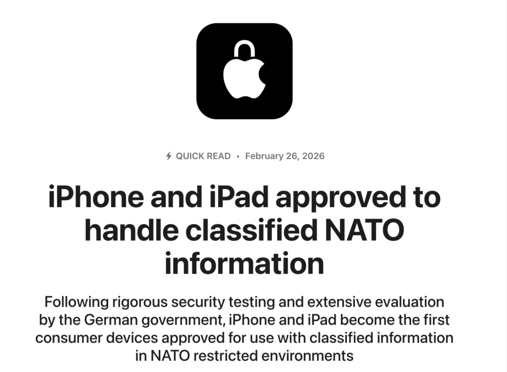 Apple właśnie ogłosiło, że iPhone’y / iPady uzyskały formalne ~zezwolenie na przetwarzanie informacji zastrzeżonych NATO.