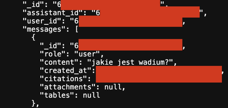TLDR: Dostępne bez żadnego logowania API aplikacji asystent[.]ai / Minerva. Listowanie użytkowników, szczegóły użytkowników (w tym hashe haseł), pliki wysyłane przez użytkowników, konwersacje z AI. Aby zobaczyć te dane, wystarczyła zwykła przeglądarka. Przykład wyniku zwracanego przez https://api.asystent[.]ai/users/