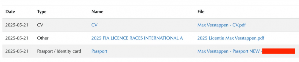 Na jednym z widoków możliwe było pobranie plików. Część z nich sugerowała, że zawiera dokumenty zawodnika – w tym przypadku kierowcy Maxa Verstappena.