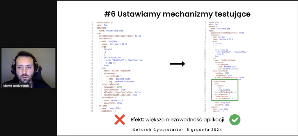 Po godzinnej przerwie Dawid Lis zaprezentował temat automatyzacji bezpieczeństwa i darmowych narzędzi obrony przed zagrożeniami. Następnie Marcin Wasiucionek przybliżył zagadnienie Kubernetesa. Pierwszą część ścieżki zakończył Piotr Wojciechowski, który wystąpił z prelekcją o tym, jak nie zniszczyć sieci podczas konfiguracji nowego sprzętu.