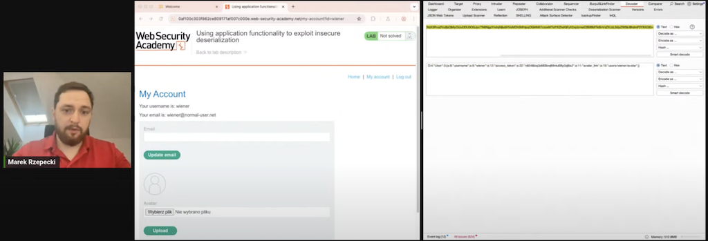 Sporą grupę uczestników konferencji stanowili programiści. Dla nich przygotowaliśmy siedem prelekcji. Na ścieżce pojawiła się silna grupa z naszej firmy. Marek Rzepecki, Mateusz Lewczak i Robert Kruczek. W trakcie swoich wystąpień przybliżyli uczestnikom tematykę deserializacji obiektów z perspektywy hackera, SQL Injection i przegląd zagrożeń OWASP Top Ten. Powiedzieli również kilka słów o podatności Path Traversal 🙂
