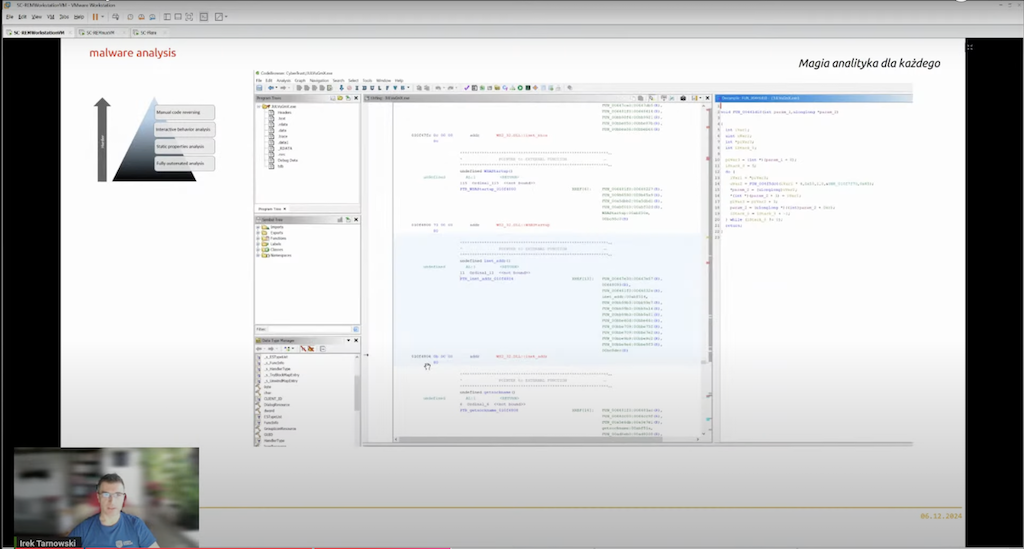 Przed przerwą Ireneusz Tarnowski wyjaśnił, czy analiza malware’u musi być trudna. Roland Kulanek odkrywał przed uczestnikami tajemnice cyberbezpieczeństwa przemysłowych systemów sterowania (ICS).