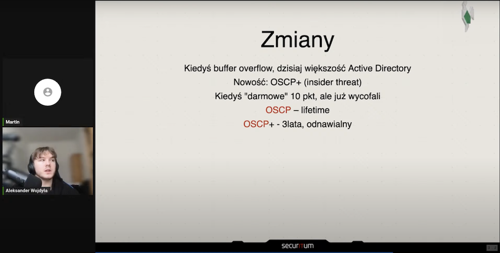 Aleksander Wojdyła i Martin Matyja z drużyny Securitum podpowiadali uczestnikom, na co warto zwrócić uwagę i jak się przygotować do certyfikacji OSCP.