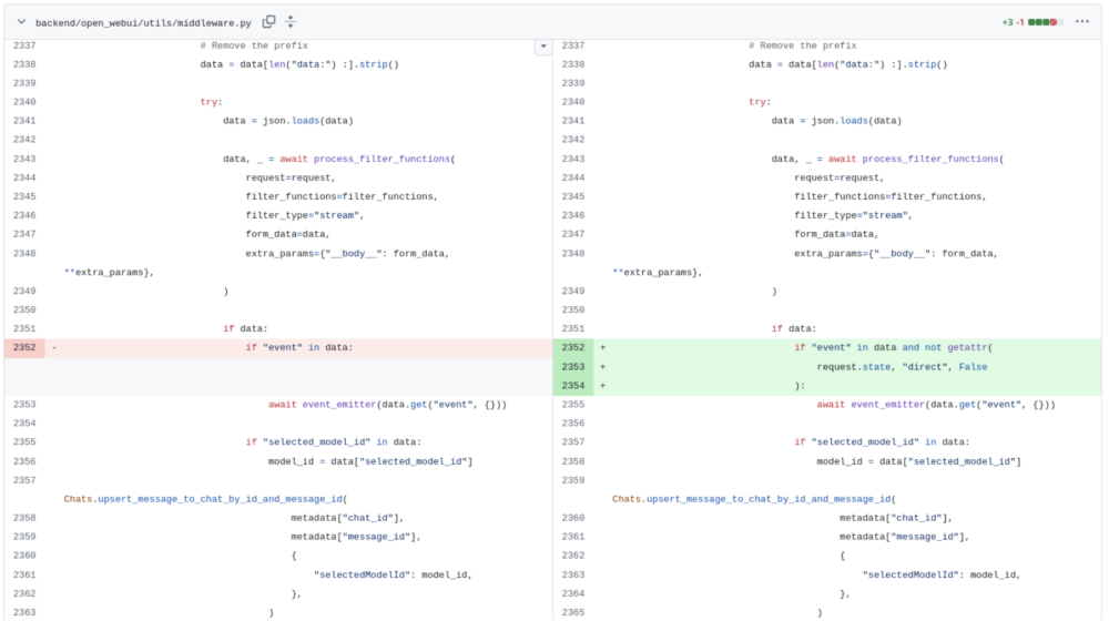 Open WebUI korzysta z SSE (Server-sent events). Jednym z parametrów obsługiwanego eventu jest typ (type), według którego handler wykonuje dalsze akcje. W kodzie widzimy, że jednym z takich typów jest execute – to właśnie z tej właściwości skorzystał badacz przy wykonywaniu testowych ataków. Okazało się bowiem, że odpowiedzi modelu mogą zawierać eventy.
