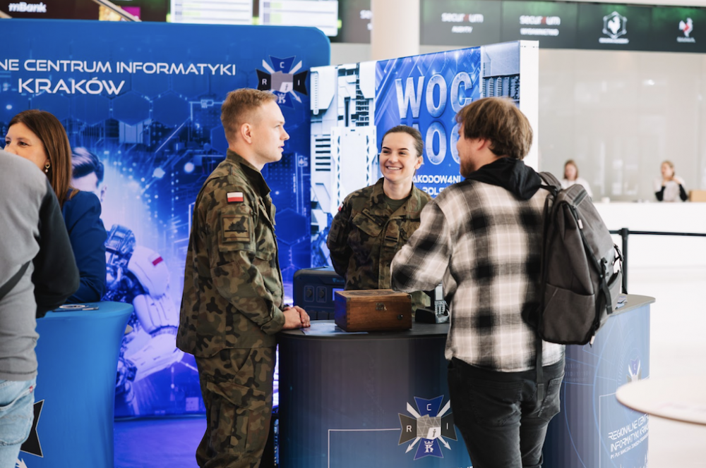 Na stoisku ISSA można było poznać kulisy programów Cyber Skaut i Cyber Senior. Dzięki obecności RCI usłyszeliśmy o tajnikach pracy w Cyberwojsku, a Miasto Kraków zaprezentowało ofertę zawierającą ciekawe informacje na temat miasta, w którym organizowana jest konferencja.