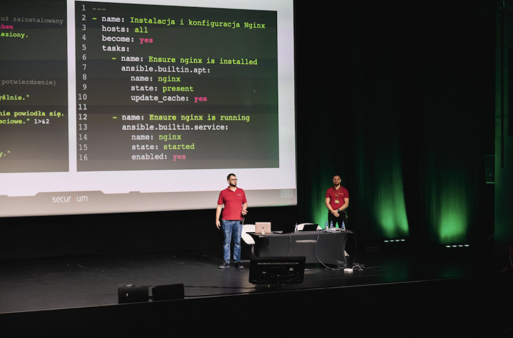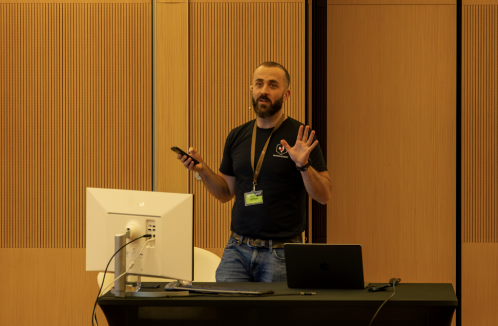 O godzinie 9:00 Maciej Szymczak (CISO Securitum) wspólnie z Markiem Rzepeckim (pentesterem z Securitum) pokazali na żywo połączenie dwóch światów: DevOps i ofensywy windowsowej. W drugiej fazie ataku – wykorzystując technikę coercion – zmusili kontroler domeny do uwierzytelnienia się u atakującego i przejęli pełną kontrolę nad AD. Jeden błąd w CI/CD. Jedna rola. Jeden pakiet z Galaxy. Pełna kompromitacja domeny odbyła się na oczach uczestników!