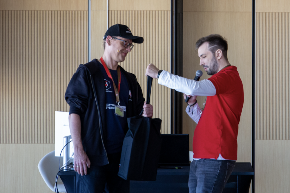 O godzinie 19:00 Michał Sajdak i Tomek Turba z niespożytą energią pożegnali uczestników. Nie zabrakło konkursów, wspólnych zdjęć i planów na kolejne edycje konferencji oraz… nowości ze stajni sekuraka! Po oficjalnym zamknięciu nasza ekipa zajęła się pakowaniem, a uczestnicy (wiemy to z pierwszej ręki) udali się na afterparty na Stare Miasto 🙂 Rozmowy o hackingu trwały do późna.