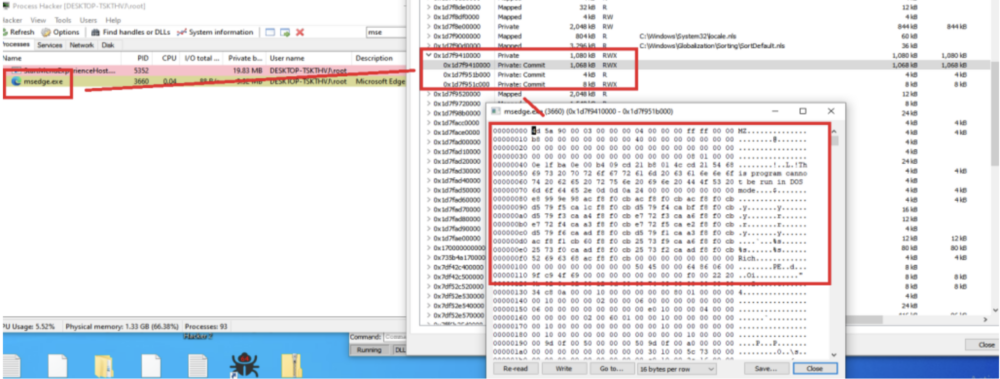 Zaobserwowano dynamiczne rozwiązywanie funkcji systemowych z wykorzystaniem LoadLibraryA i GetProcAddress oraz autorskie procedury deszyfrujące AES-CBC. Po odszyfrowaniu danych, malware nie zapisywał ich na dysku tylko ładował bezpośrednio do pamięci. Dzięki tym zabiegom mógł pozostać niewidoczny w systemie przez dłuższy czas.