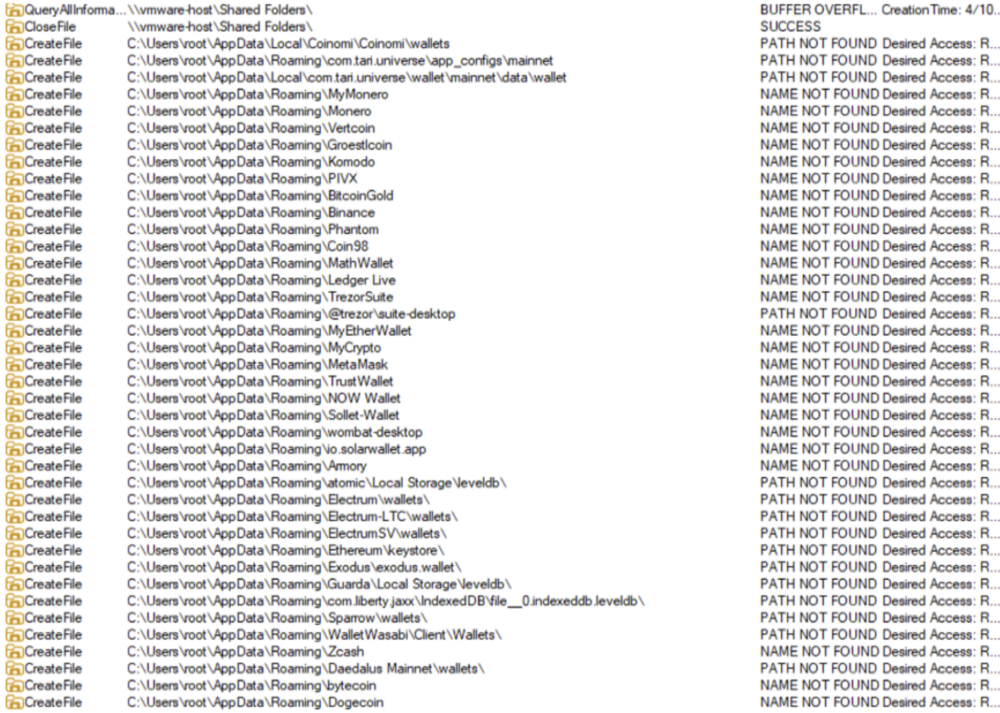 Ponadto, skanuje ponad 25 katalogów powiązanych z portfelami kryptowalutowymi, głównie w celu pozyskania kluczy prywatnych i plików portfeli.