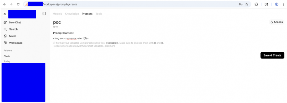 Taka podatność daje atakującemu wiele możliwości, na szczęście w przypadku Open WebUI wykorzystanie ich nie było takie proste. Domyślnie użytkownicy nie mogą tworzyć własnych promptów, (potrzebne jest uprawnienie USER_PERMISSIONS_WORKSPACE_PROMPTS_ACCESS). Nie mają też włączonego formatowania (Rich Text) dla promptów. Atakujący musiałby więc mieć wskazane uprawnienia, a ofiara musiałaby uprzednio włączyć formatowanie w ustawieniach.