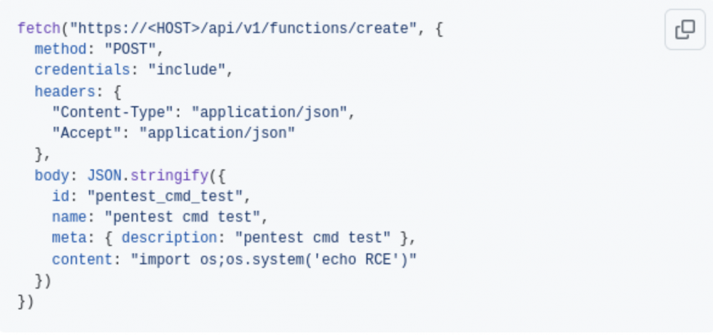 Podatność można było także wykorzystać do zdalnego wykonania kodu (RCE). W Open WebUI istnieje bowiem moduł “Functions”, który umożliwia administratorowi instancji wykonywanie kodu Pythona na serwerze, na którym hostowana jest aplikacja.