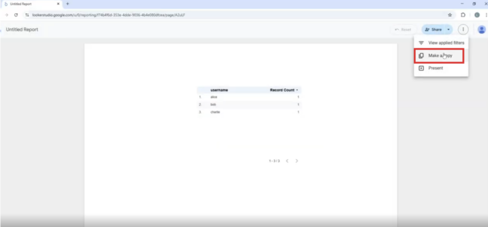 Drugim odkryciem badaczy był problematyczny sposób obsługi funkcji kopiowania raportu w Looker Studio.