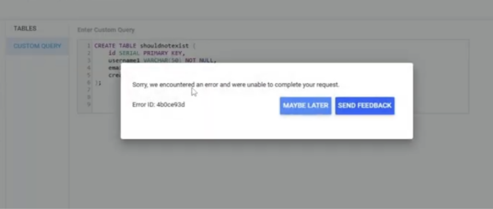 Google próbuje jednak blokować niebezpieczne polecenia SQL – wpisanie klasycznego SELECT * FROM table, Looker Studio zwróciłoby błąd. Weryfikacja ta działała jednak na podstawie słów kluczowych, więc znów z pomocą przyszły wspomniane wcześniej komentarze SQL wstawione między części poleceń. Przykładowo – zamiast SELECT użyto SEL/**/ECT. Filtr nie zablokował tak zbudowanych zapytań, jednak badacze nie chcieli poprzestawać na jednym zapytaniu.