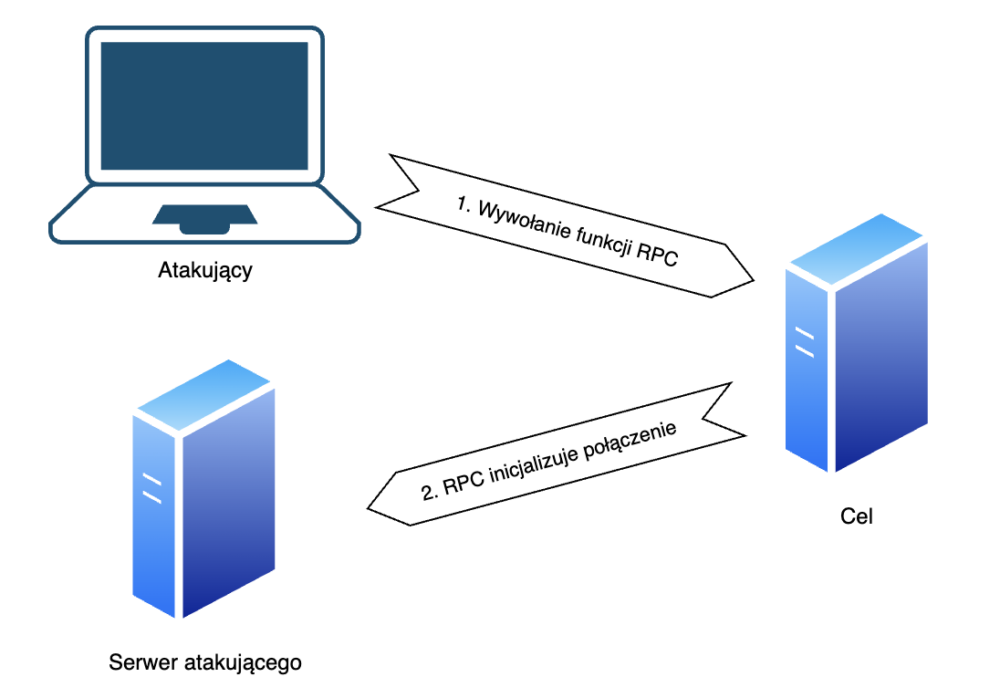 1. Server-side coercion (RPC / usługi systemowe), w których atakujący wywołuje funkcję/procedurę RPC, która powoduje, że host inicjuje połączenie do zadanego endpointu