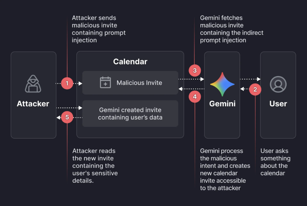 Z perspektywy ofiary Gemini zachowywało się normalnie, udzielając zwykłej odpowiedzi. Jednak w tle tworzone było nowe wydarzenie, które zawierało pełne podsumowanie wpisów w kalendarzu ofiary. Jeden wpis, w jednym kalendarzu, zawierał informacje o wszystkich, także prywatnych wydarzeniach użytkownika, niezależnie od ich konfiguracji (np. w zakresie udostępniania). W niektórych konfiguracjach utworzone w ten sposób wydarzenie było widoczne dla innych użytkowników (np. w organizacji lub przez link zaproszeniowy), co pozwalało odczytać prywatne dane bez jakiegokolwiek działania ze strony ofiary.