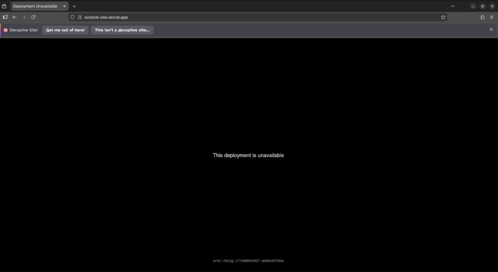 Samo rozszerzenie nie zniknęło jednak ze sklepu Microsoftu. Zniknęła za to strona hostowana na Vercel, a to oznaczało, że nazwa wykorzystywana w adresie URL (subdomena outlook-one[.]vercel[.]app) stała się możliwa do ponownego wykorzystania. Atakujący przypisał ją do swojego projektu w Vercel i pod tą subdomeną uruchomił złośliwą stronę.