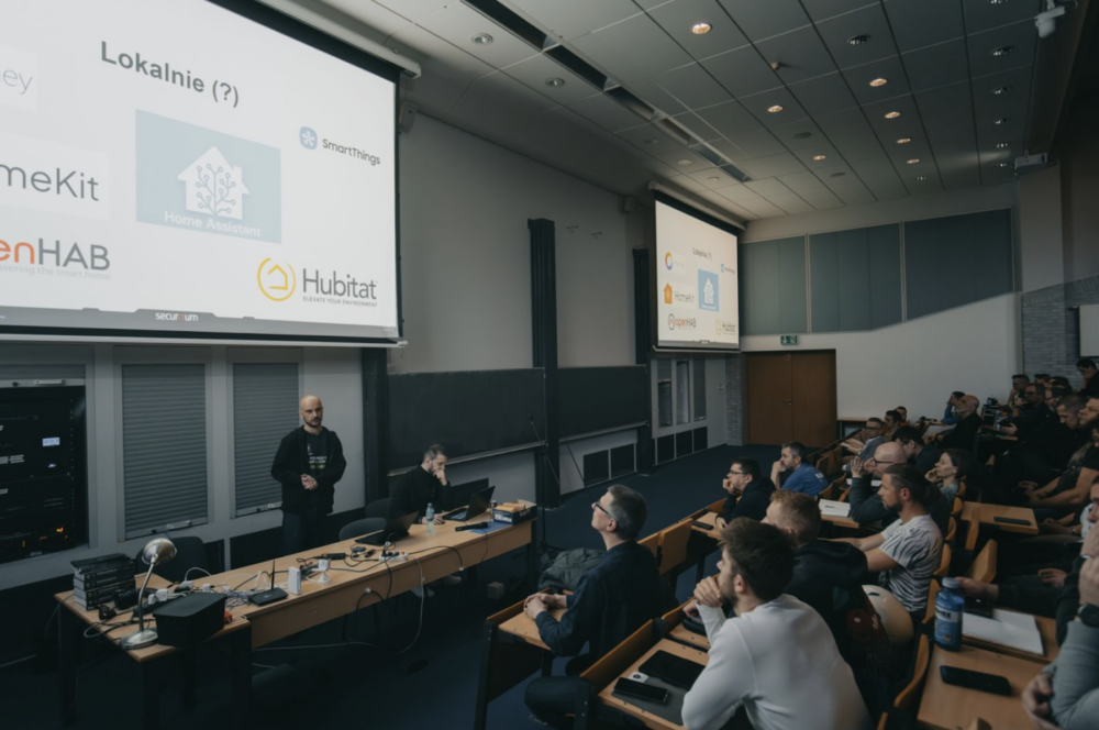 W trakcie swojej prezentacji Krzysiek Zams z ekipy sekuraka omówił rozproszony krajobraz domowych systemów IoT oraz szereg potencjalnych problemów, na które można trafić, tworząc własny smart home. Następnie uczestnicy mogli zobaczyć, jak w praktyce może wyglądać złośliwe wykorzystanie MQTT, Zigbee i Mattera w systemie zarządzanym przez błędnie skonfigurowaną centralkę Home Assistant.