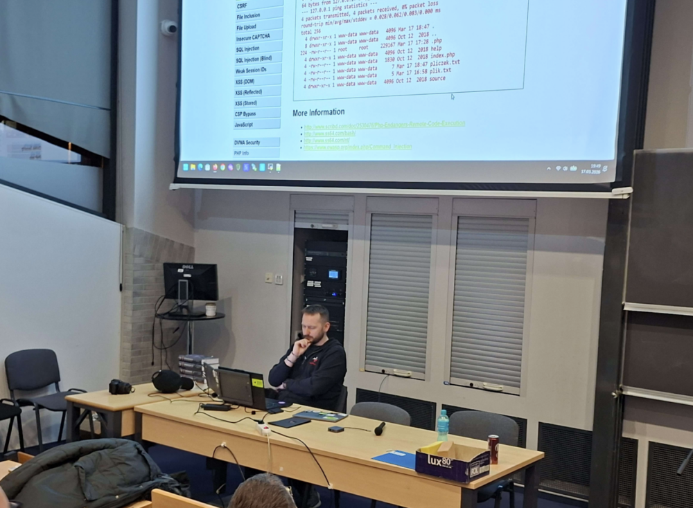 Rozpoczęliśmy punktualnie o 17:30. Wszystkim znany i lubiany Tomek Turba z ekipy sekurak/Securitum przywitał uczestników i podziękował Uniwersytetowi Wrocławskiemu za organizację wydarzenia. Rozpoczął się ogień. Trzy intensywne prelekcje, praktycznie bez przerwy, poprowadzili: Krzysztof Zams, Robert ProXy Kruczek oraz Tomek Turba.