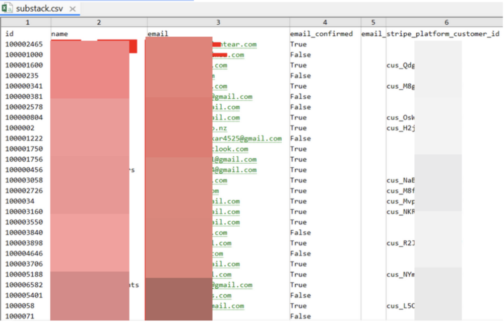 Autor wycieku na BreachForums pokazał przykładowe rekordy, które sugerują, że nie był to typowy scrapping profili użytkowników. W udostępnionej próbce znalazły się informacje takie jak identyfikator Stripe (bramki do płatności) czy wartość przechowująca stan potwierdzenia adresu e-mail. Były także daty utworzenia kont i ustawienia powiadomień. Nie są to dane widoczne na stronie profilowej użytkownika, co potwierdza wersję Substack o błędzie ujawniania nadmiarowych danych w nieautoryzowany sposób.