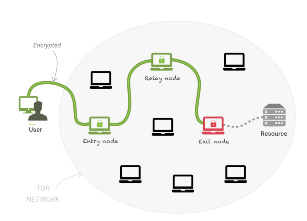 Cała sieć opiera się na protokole opracowanym przez Marynarkę Wojenną Stanów Zjednoczonych zwanym trasowaniem cebulowym. I tak jak cebula składa się z warstw, tak samo każdy pakiet danych jest opatrzony warstwą szyfrowania, która zostaje zdejmowana na kolejnych węzłach. Nikt z uczestników komunikacji nie wie skąd pochodzi dany pakiet ani dokąd zmierza. Każdy węzeł zna adres poprzedni i następny – odtworzenie całej drogi pakietu stanowi duże wyzwanie, praktycznie nierealne do osiągnięcia. Aby zobrazować, w jaki sposób działa TOR, warto zapoznać się z poniższą grafiką.