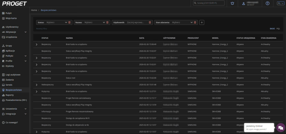 Jednym z przykładów platformy MDM integrującej monitoring, polityki bezpieczeństwa i zarządzanie tożsamością jest polski system Proget, który testowaliśmy w zeszłym roku pod względem bezpieczeństwa. Oprócz dostarczania sygnałów telemetrycznych z mobilnej warstwy infrastruktury IT, system oferuje mechanizmy ograniczające ryzyko nadużyć i zagrożeń typu insider threat, takie jak 2FA przy logowaniu do konsoli czy szczegółowe rejestrowanie operacji wykonywanych przez administratorów – co wspiera również spełnianie obowiązków wynikających z RODO oraz norm takich jak ISO 27001.