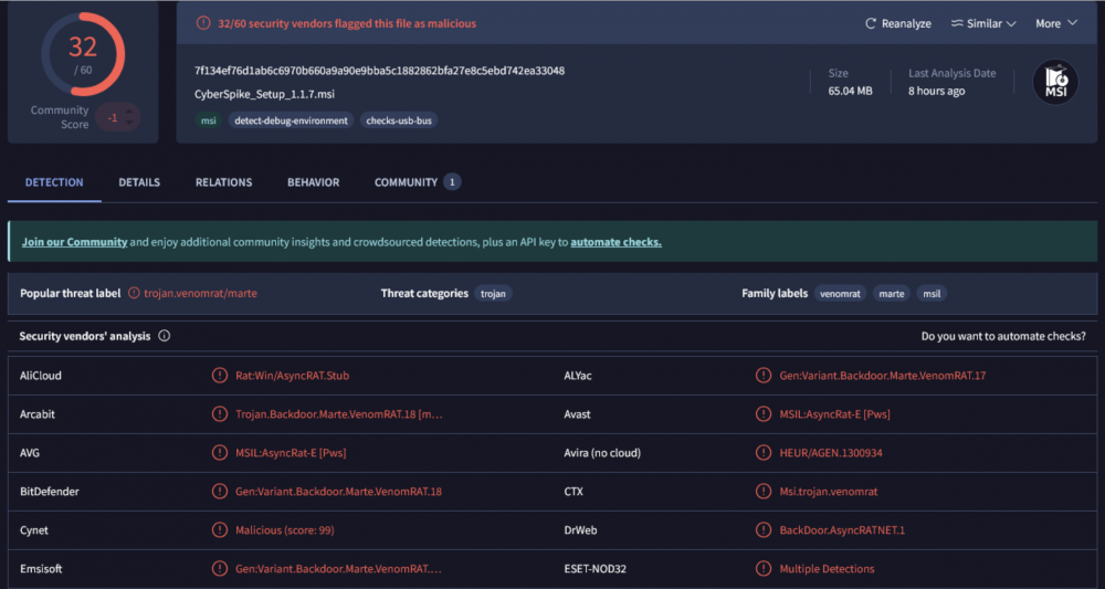 Badacze ze Straikera zauważyli istotne podobieństwo, jakie łączy instalator Cyberspike oraz RAT AsyncRAT (źródło: Straiker)