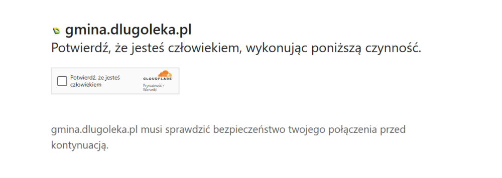 Tym razem chodzi o stronę gminy Długołęka. Nasz czytelnik poinformował nas o takim incydencie: wchodzisz na stronę gmina[.]dlugoleka[.]pl i od razu pojawia się prośba o potwierdzenie, że jesteś człowiekiem: