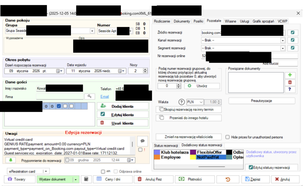 - dane gości hotelowych (również z rezerwacji z Booking, czy od innych pośredników),