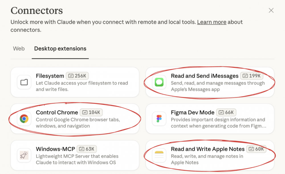 Badacze z KOI pod lupę wzięli trzy popularne wtyczki Claude Desktop, czyli środowiska osobistego asystenta od Anthropica. Rozszerzenia te to tak naprawdę serwery MCP opakowane w bardzo prostą integrację ze środowiskiem. Użytkownik może zdecydować, tak samo jak w “sklepie” z rozszerzeniami np. przeglądarki, jakie dodatkowe funkcje chce wprowadzić do swojego asystenta. Przy pomocy kilku kliknięć, możliwości modelu językowego mogą zostać poszerzone o wsparcie zewnętrznych źródeł danych, możliwość kontroli przeglądarki czy komunikatora.