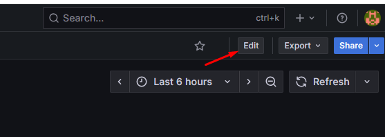 Autor w tym miejscu chce zwrócić uwagę na jeszcze jedną rzecz – podczas odświeżania strony z dashboardem możesz nie widzieć opcji edytowania dashboardów lub zapisu. To efekt nowego podejścia Grafany do tworzenia dashboardów — domyślnie otwierają się one w trybie „zablokowanej edycji”. Wystarczy kliknąć „Edit” w prawym górnym rogu, aby odblokować możliwość modyfikacji: