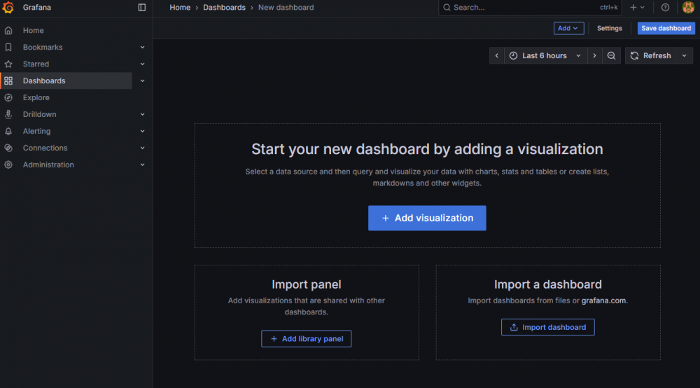 Po utworzeniu nowego dashboardu zobaczymy ekran podobny do tego: