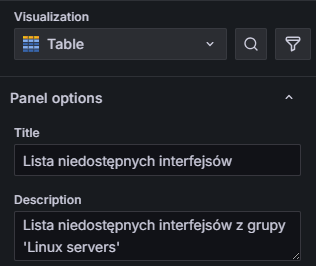 • opis, np. Lista niedostępnych interfejsów z grupy ‘Linux servers’
