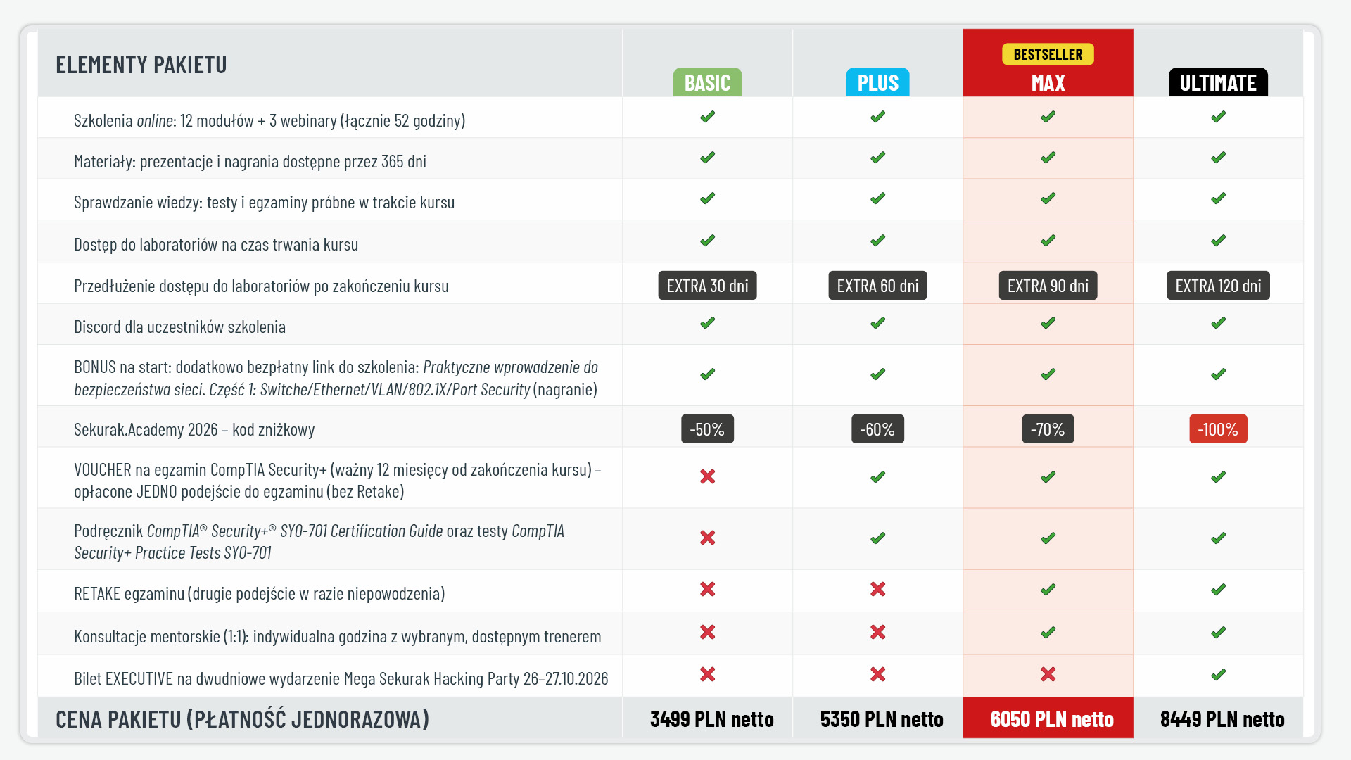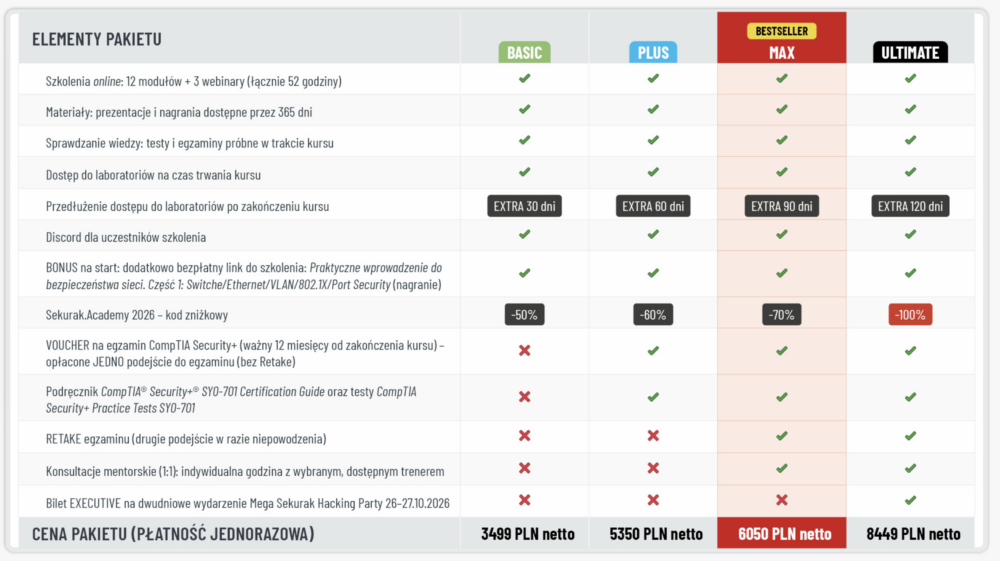 BONUS: kupując pakiet MAX i Ultimate otrzymujesz ten kurs od sekuraka GRATIS!