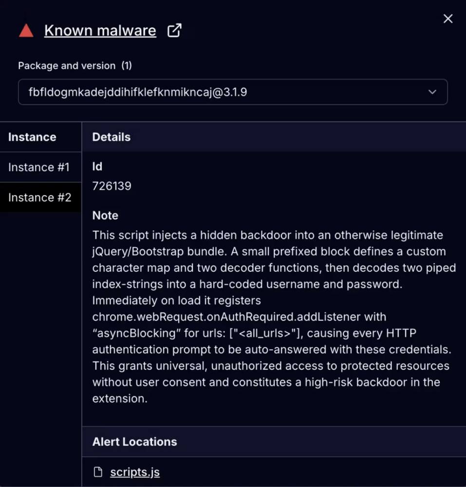 Rys. 1 – skaner Socket wykrywający złośliwy kod w rozszerzeniach Phantom Shuttle, źródło: socket.dev